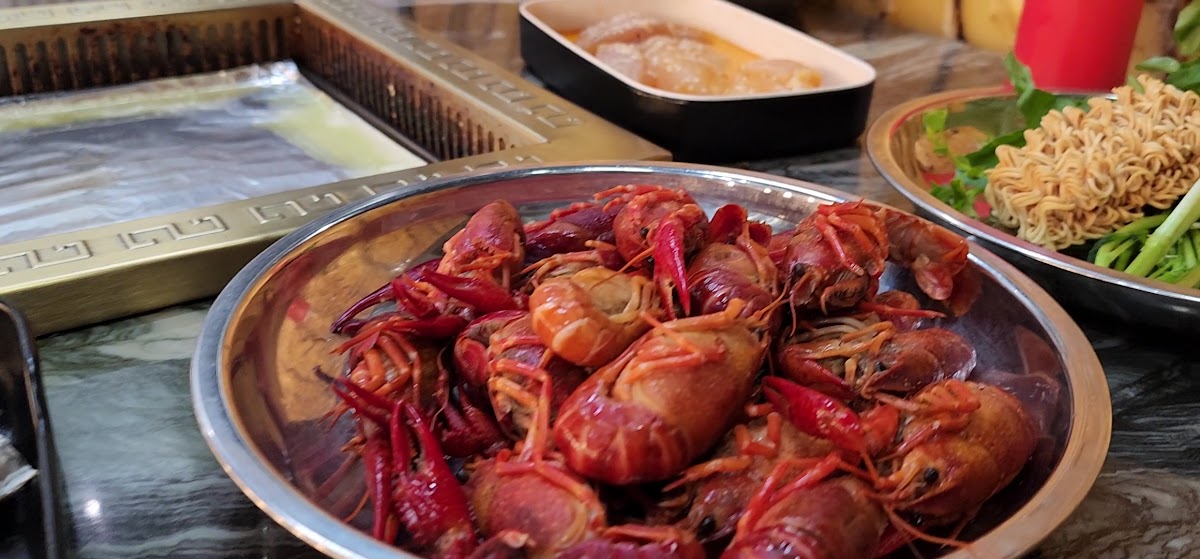 We were in town for a Disney trip and was looking for a place to eat. After watching YouTuber Tim Lee trying this place, we gave it a shot. I'm all for AYCE. Dinner was $24.99 and you get the grill and hotpot. Nice selection of vegetables and raw meat/seafood to cook in the hotpot or marinated meats to use on the grill. The staff were really friendly and welcoming. They refill the stock only if you ask. We came at a pretty busy time so they didn't really take away our plates when it started piling up. Overall, the variety of selections were good and we enjoyed it.